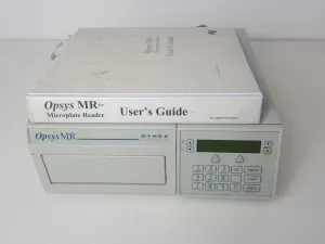 The Dynex Technologies OPSYS MR Microplate Reader, sourced from a university laboratory, was deemed surplus. This unit powers up but has not undergone extensive testing. It maintains a good cosmetic condition, displaying only minor usage marks. Included is a user manual, which has experienced slight water damage.