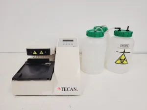 The Tecan Columbus Washer Plus Basic is a dependable microplate washer previously utilized in a university laboratory as surplus equipment. Though the unit powers on, further testing could not be conducted. It maintains a good cosmetic appearance, exhibiting only minor signs of previous usage. Included with this microplate washer are three 2.5L waste bottles and a user manual, making it straightforward to set up and operate for efficient laboratory workflows.