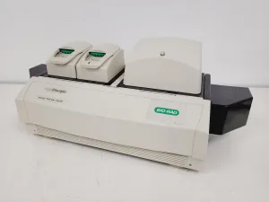 The Bio-Rad Dyad Disciple PTC0221 is a precision-engineered Peltier thermal cycler, ideal for various applications in molecular biology. This unit includes a 2-48 Well Alpha Unit Block Assembly and a 96 Well Alpha Unit Block Assembly. It was previously utilized in a university lab and is now available as surplus equipment. Please note that while the unit successfully powers up, a control unit is required for operational testing, which was not included. The cycler is designed to accommodate 0.2ml vials, catering to various experimental demands. Serial numbers are DY005562 for the main unit, AL037212 for the 2-48 Well block, and AL110470 for the 96 Well block assembly.