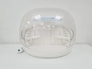 The Lab-Bubble Still Air PCR Enclosure in a sleek white design, model BUB-PCR-SA-WHT, offers an efficient environment for conducting PCR applications. Originating from a university laboratory as surplus equipment, this enclosure remains in excellent cosmetic condition, exhibiting only minor markings. Designed to safeguard against contamination, it integrates advanced still-air technology to ensure a stable and clean working environment, ideal for sensitive biological and chemical procedures.