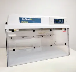 The AirClean Systems 600 PCR Workstation, previously used in a university laboratory, is in surplus due to changing requirements. It powers up without issue and is in great working condition. Cosmetically, it is well-maintained, with only minor marks indicative of previous use. Please note that it is sold without a stand.