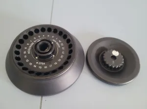 The Heraeus Sepatech Angular Rotor, model Nr.3754, is an essential accessory for the BIOFUGE centrifuge, offering 24 positions for sample loading. This rotor is designed to operate at a maximum speed of 14,000 revolutions per minute, ensuring efficient and precise sample processing. The rotor comes complete with a lid, providing added security during centrifugation. Suitable for various laboratory applications, including sample preparation and bioprocessing, this robust component enhances laboratory automation and performance.
