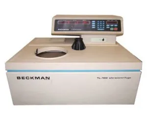 The Beckman Optima™ TL 100 is a state-of-the-art ultracentrifuge. With its reliable and flexible performance, the TL 100 system meets the full-service centrifugal needs of hundreds of clinical laboratories all over the world as it can reach speeds up to 100,000 rpm and generate a force of 543,000 x g.