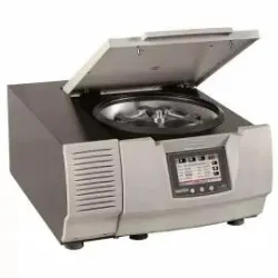The Ortoalresa Digtor 22R is a high-capacity desktop refrigerated centrifuge designed for demanding laboratory applications. It offers a maximum capacity of 4 x 750 mL and reaches speeds up to 21,948 xg or 14,300 rpm. Accommodating rotors for tubes ranging from 0.2 mL to 750 mL, it features pre-cooling programming that ensures a consistent 4°C at maximum RPM. The adjustable temperature range spans from -20°C to 40°C in 1°C increments. The centrifuge is equipped with an easy-to-read LED display indicating RPM/RCF, temperature, and time, with speed programmable in increments of 10 rpm/10 xg. Users can set the timer from 1 to 99 minutes, with 1-second intervals, or for an indefinite duration. Control options include adjustable acceleration/braking and detailed status messages, all managed by a microprocessor with PC connectivity. The unit's design includes free engine maintenance, memory for rotors, automatic locking, emergency shutdowns, imbalance safety stops, and a vessel indication system. It operates at a low noise level of <60 dB. Please note, rotors are not included, and available options are provided in the description.