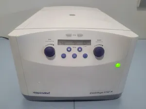 The Eppendorf 5702R is a refrigerated centrifuge designed for laboratory professionals requiring precise temperature control within a compact footprint. Equipped with the A-4-38 swinging bucket rotor, it offers flexibility with four 85 ml cylindrical buckets and adapters to accommodate tubes with a diameter of 13 mm. This unit supports speeds from 100 to 4400 rpm and provides a maximum g-force of 3000 rcf, with a temperature range of -9°C to 40°C. Operating at 240 V and 380 W, it ensures efficient performance. The centrifuge was tested for functionality at 3500 RPM and 4°C, with the cooling unit validated as operational. Note: Two small black rubber pads for the adapter are missing but can be procured online. Built in 2006, this model remains an effective choice for refrigerated centrifugation tasks.