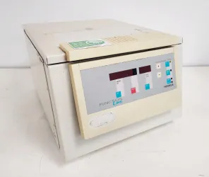 The Heraeus Labofuge 400 Function Line Benchtop Centrifuge is a reliable piece of laboratory equipment, originally sourced from a university lab where it was no longer required. This centrifuge powers on flawlessly and operates smoothly, reaching speeds of up to 3500 rpm. While it maintains solid operational functionality, it shows some minor cosmetic wear, including light marks and rusting. Equipped with a Heraeus Rotor #81794 and accompanying Buckets #8172 Ch.003515, this centrifuge is ideal for various laboratory applications requiring efficient sample separation.