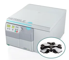 Hermle Z446 Centrifuge w/ Microplate Rotor The Z446 universal centrifuge series offers the highest capacity of any benchtop Hermle-Benchmark model. With air-craft grade, premium alloy construction, the 4 x 750ml swing out rotor can withstand centrifugal forces upwards of 4,500 x g with full loads of up to 28 x 50ml or 68 x 15ml tubes.