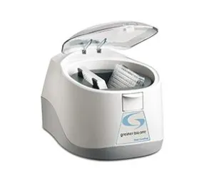 The GREINER Bio-One Mini Laboratory Centrifuge 846070 is designed specifically for microplates. This unit, delivered new in its original packaging, operates at a speed of 2,550 rpm (16,022.1 rad.min-1) and accommodates two microplates, making it an ideal choice for laboratories requiring an efficient and compact centrifuge.