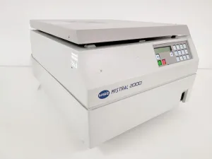The MSE Mistral 2000 Bench Top Centrifuge is a dependable and efficient centrifuge designed for laboratory applications. This unit was previously part of a university's equipment collection and was deemed surplus to their requirements. While the maximum RPM of the rotor remains unknown, it has been safely tested at 1000 RPM. The centrifuge is in excellent cosmetic condition and functions properly, making it a valuable addition to any lab. The package includes one MSE Swing-Out Rotor.