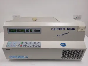 The Sanyo MSE Harrier 18/80 is a high-performance refrigerated centrifuge designed for sophisticated laboratory applications. Previously used in a university setting, this equipment was removed as surplus to requirements but remains in excellent working order. It efficiently achieves speeds of up to 6000rpm while seamlessly providing both cooling and incubation functionalities. The centrifuge maintains a good cosmetic condition with only minor marks. Included with the unit is an MSE Rotor 43124-141SN, able to support a maximum RPM of 6000. Additional components include four buckets and four beige adaptors, each accommodating a single 50ml tube—ensuring adaptability to various experimental setups.