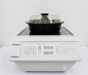 The Shandon Cytospin 3 Cytocentrifuge is a reliable laboratory instrument designed for precise preparation of cells from liquid suspensions.