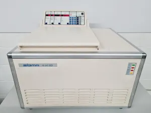 The Sigma 4K10 Refrigerated Centrifuge, formerly used in a university setting, is now available. This robust unit is in admirable cosmetic condition and fully operational, capable of achieving low temperatures effectively. However, it maintained a temperature of 26°C when set to 37°C. This model includes three distinct rotors: a Sigma Swing-out Rotor Nr. 11140, capable of handling up to 284 buckets with 12 sample holders in three sets of four; a high-speed Sigma Rotor Nr. 12167, operating at 13000/min; and a Sigma Angle Rotor Nr. 12166. The unit offers versatility and reliable performance for laboratory centrifugation needs.