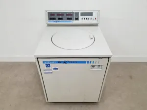 This Sorvall RC-5C Plus Floor-Standing Centrifuge, previously used in a university laboratory, is now available for spares or repairs. The device powers up but encounters error code 7 shortly after initiating operation, which prevents further testing. This error indicates a refrigeration system failure, specifically no significant temperature decrease in the chamber within thirty seconds after the system activates. It is advised to contact your Thermo Field Service Engineer for further assistance.