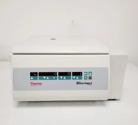 The Thermo Scientific Heraeus Biofuge Primo R Centrifuge was obtained from a university where it was no longer needed. It is in excellent cosmetic condition and has been carefully tested to ensure its operational functionality. This model features a swing-bucket rotor (7591) and includes four buckets with clear adaptors, each capable of accommodating three 5ml tubes. Ideal for diverse laboratory applications, it provides reliable performance for efficient and precise sample processing.