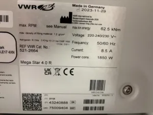 The VWR Mega Star 4.0R is a refrigerated benchtop centrifuge engineered for high-efficiency sample processing in biotechnology, molecular diagnostics, and clinical laboratory environments. Featuring a 220β240 / 230 V power supply and operating at 50/60 Hz frequency, it delivers a power consumption of 1850 W with a current of 8.5 A, supporting robust centrifugation protocols essential for bioprocessing and gene editing workflows.