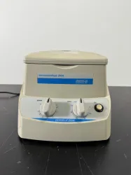 The Denville 210A Microcentrifuge is a compact laboratory centrifuge designed for microcentrifugation applications. It features adjustable speed and timer controls with a lid lock safety mechanism. The unit is suitable for processing small volume samples with a rotor accommodating up to 12 tubes.