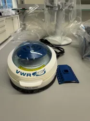 The VWR MiniStar whiteline Model 521-2161 Microcentrifuge is a compact benchtop centrifuge engineered for efficient processing of small volume samples, specifically microtubes commonly used in molecular diagnostics and gene editing workflows. It operates at a voltage of 230 V and supports both 50 Hz and 60 Hz frequencies, drawing 65 mA power consumption, suitable for standard laboratory environments.