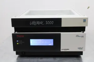 The Thermo Dionex UltiMate 3000 RS Pump, model HPG-3400RS, is a high-precision biocompatible binary pump intended for liquid chromatography applications. This unit, manufactured in 2013 in Germany, features: