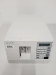The Waters 474 Scanning Fluorescence Detector, designed for use in HPLC systems, was decommissioned from a university lab due to surplus. This unit powers up reliably and has passed self-tests for ROM, RAM, EM driver, EX driver, with lamp energy successfully verified. The device reports 1385.9 hours of lamp operation. It remains in good cosmetic condition, displaying only minor marks.
