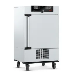 A notable feature of the ICH110L is its double-door design, which includes a wide-area interior glass door to prevent contamination and maintain temperature stability while providing clear visibility of the chamber's contents. The chamber's interior is hermetically sealed, ensuring efficient water use once the desired setpoints are reached, provided the door remains closed. Additionally, the chamber is equipped with two high-grade platinum temperature sensors with mutual monitoring to ensure uninterrupted, reliable operation even if one sensor fails.