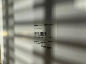 Unused Fisherbrand Traceable Temperature and Humidity Clocks, model 15-079-680, sold as a set of 3 units. These devices provide reliable monitoring of temperature and humidity for laboratory and storage environments.