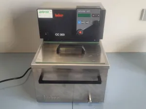 The HUBER CC303 Polystat CC3 is a versatile Bath Heating and Circulation Thermostat designed for precise temperature control in laboratory settings. Operating in a temperature range of 55...300°C, and with an optional integrated cooling unit extending capabilities to -20...300°C, this model accommodates a wide variety of applications. Its compact design, with dimensions of 335 x 382 x 433 mm, saves valuable bench space, while a robust net weight of 22 kg ensures stability. The circulation water bath with a CC3 thermostat maintains an impressive max delivery capacity of 25 l/min and a max suction capacity of 18.5, and its pressure is 0.7 bar with 0.4 bar suction. Please note, this model has been succeeded by the CCx-315B vpc model, offering enhanced features.