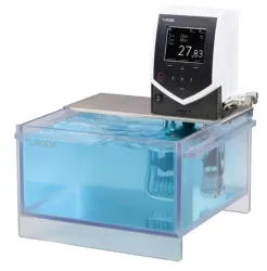 The ECO line extends to transparent baths maintaining temperatures up to 100°C and stainless steel options up to 200°C. The most advanced units incorporate the energy-efficient LAUDA SmartCool system. Variants are available in 230V with a 50 Hz option providing natural refrigerants.