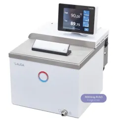 The LAUDA PRO P 20 C is a professional heating thermostat operating from 35°C to 250°C, designed for precise temperature control in laboratory applications. It features: