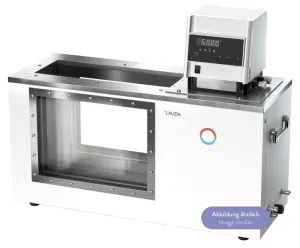 The LAUDA Proline PVL 15 heating thermostat features a clear-view tank design, making it highly suitable for direct observation of objects and precision measurements. Engineered for impeccable temperature stability, it is an excellent choice for use with LAUDA Scientific PVS or iVisc automatic viscometers, ensuring precise viscosity determinations across its entire temperature range. Its innovative two-chamber design maintains a constant liquid level in the measuring chamber, irrespective of volume and temperature changes. The PVL models, equipped with a five-layer insulating glass, can handle low-temperature measurements down to -40° or -60°C when connected to an auxiliary low-temperature chiller or thermostat.