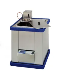 The Refrigeration Thermostat KT 08-22 / -42 by FRYKA offers precise electronic temperature control showcased via a LED display. This model features an interchangeable circulation pump and a silent, hermetically sealed refrigeration unit, requiring minimal maintenance while being air-cooled. Constructed with a stainless steel tank and designed for easy cleaning, the interior is frameless with rounded corners. It safeguards electronic controls from vapor exposure and includes a ram protection ring. Mounting is facilitated by four M8-threaded clamps at the corners of the tub, which are crafted from 18/10 stainless steel, for attaching support rods efficiently.