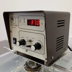 The Selecta Digiterm 200 immersion thermostat is a premium device designed for precise and stable temperature regulation in water and oil baths. It features a digital interface with an adjustable temperature range from ambient +5 to 200 ºC and ensures remarkable stability at ±0.05 °C. The unit incorporates an adjustable safety thermostat to prevent overtemperature and issues related to liquid deficiency. With dimensions of 280190180 mm and weighing 4.5 kg, its compact structure allows for seamless integration within various lab setups. It operates at a power consumption of 2,060 W. The Selecta Digiterm 200 is an excellent choice for laboratories demanding accuracy and reliability in their temperature-sensitive experiments. A user manual is included to facilitate easy operation.