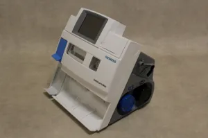 Measurable Parameters Blood Gas: pH, pCO2, pO2 Measurable Parameters Electrolytes: Na+, K+, Ca++ or Cl– Measurable Parameters Hematocrit: HCT Calculated Parameters: O2SAT, O2CT, HCO3-act, HCO3-std, ctCO2, BEb, BEecf, pO2(A-a), pO2 (a/A), pO2/FiO2, Ca++(7.4), Anion Gap Sample Size: Syringe; 95 µL, Capillary; 95 µL, Microsample mode; 50 µL Sample Type: Whole blood, Dialysate fluid Analysis time: Approximately 60 seconds to result Calibration: Automatic or on demand Input Temperature: 10.0°C–43.9°C Input Hemoglobin: 2.0–25.0 g/dL Input FIO2: 15.0%–100.0% Input Patient/Operator IDs: Up to 16 characters (alphanumeric) Input Sample location: Radial, brachial, femoral, cord, arterial line (with RAPIDComm Data Management System (not inlcuded)) Dimensions (WxDxH): 385 x 353 x 382 mm Weight: 9.4 kg