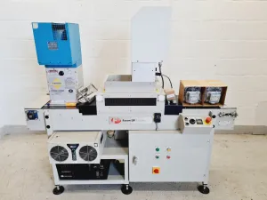 This Fusion UV DRSE 120 UV Curing System was acquired from a university where it became surplus to requirements. All components are in a good cosmetic state and power up; however, the conveyor belt motor operates only independently and not when connected to the main unit. Additionally, the UV lights are non-functional, and the power supply displays error codes related to interlock and RF detector issues. Consequently, this system is offered for spares or repair. The package includes the following: