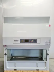 This Class II Microbiological Safety Cabinet was decommissioned as surplus from a laboratory setting. The unit is fully operational and in good cosmetic condition, exhibiting only minor signs of use. It does not include a socket tester. Calibration is valid until February 29, 2024. The internal dimensions are depth 106 cm, width 44 cm, and height 51 cm. Perfect for maintaining a sterile environment for microbiological work.