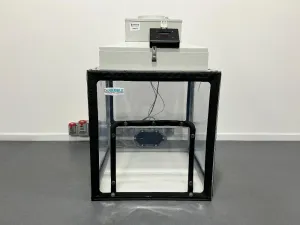 The Bio Bubble PU-2525-02-01 Airflow Control Unit is designed to provide precise controlled airflow within a compact, transparent acrylic enclosure, optimized for laboratory workflows that require contamination control and clean air environments. Featuring a durable clear acrylic chamber framed in black, this unit integrates a top-mounted airflow control mechanism to regulate ventilation effectively.
