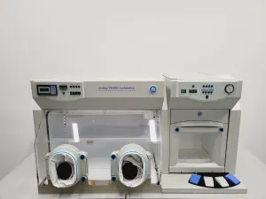 The Whitley VA500 Hypoxia Glove Box Workstation with Airlock, equipped with a convenient foot pedal, is a high-quality laboratory apparatus, once used in a university setting. Despite being in excellent cosmetic condition and powering on successfully, the glove box requires repair due to a non-functional temperature control display, which limits its operability. As a result, further testing regarding temperature settings could not be executed. This item is therefore offered as a spares or repair opportunity.