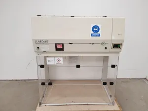 This Labcaire Aura 550L Ductless Fume Hood, Model AU550L, was previously used in a university laboratory where it became surplus to requirements. The unit successfully powers up, and the fans are operational. According to the most recent service report, the filters are due for replacement. It is in good cosmetic condition, bearing some marks from use over time. The external dimensions of the unit are 70 cm in length, 107 cm in width, and 121 cm in height. The interior dimensions are 65 cm in depth, 105 cm in width, and 79 cm in height.