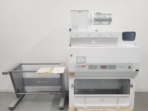 The BioMat 2 Class II Microbiological Safety Cabinet, complete with a ducted exhaust and sturdy stand, offers reliable protection for laboratory work. Acquired from a university as a surplus, this cabinet remains in excellent cosmetic and operational condition. It features a robust airflow system and an inflow needle indicator that consistently reaches the green safe zone, ensuring safe operation. The internal power sockets have also been thoroughly tested and are fully functional. Regular maintenance has been carried out, with the most recent service on April 22, 2024. Specifications include a 113 x 60 x 83 cm steel stand, a 20 cm diameter duct connection for the exhaust outlet, and an external tank for a formalin vaporiser. Please note the fan control button is missing its outer diaphragm but is still operational, and no ultraviolet function is present.