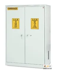 The CS120 Basic Plus Glass by Chemisafe is an expertly designed chemical storage cabinet, crafted from 10/10 mm thick electrogalvanized steel and finished with acid-resistant epoxy resin. This robust unit features adjustable leveling feet and a one-piece construction, allowing for the separation of 1 to 4 compartments to store non-flammable chemicals safely.