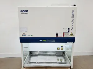 The Esco NordicSafe NC2 - 4L8 is a Class 2 Safety Cabinet, previously utilized in a university laboratory. It is fully operational and in fine cosmetic shape, showing only minimal wear from previous use. This unit, identified by serial number NC2-4L8-2013-80689, is ideal for maintaining a controlled and safe environment when handling sensitive or hazardous materials.
