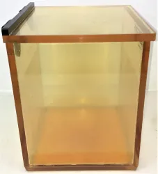 The Jencons 526-041 Radiation Safety Work Box is constructed from heavy-gauge, optical-quality acrylic, providing durable and transparent shielding for radiation safety applications. Featuring a hinged lid, this work box is engineered to securely contain radiation bins or waste materials, facilitating safe benchtop storage or transport within laboratory environments.