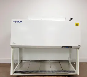 The Scanlaf Mars 1500 Class 2 Biohazard Safety Cabinet with Stand is an exceptional piece of laboratory equipment, designed to ensure maximum protection for both user and environment by safely containing biohazardous materials. This unit is in good working order and retains a satisfactory cosmetic condition, with minor marks from its previous use. The included stand measures L161 cm x W78 cm x H78 cm, providing solid support and stability. The cabinet has accumulated 18,990 fan operational hours, reflecting its robust and reliable service.