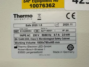 The Thermo Safe 2020 1.8 is a Class II microbiological safety cabinet engineered to provide a controlled and sterile environment essential for molecular diagnostics, bioprocessing, and synthetic biology research. Featuring a spacious working volume of 1800 x 780 x 465 mm, this biosafety enclosure supports critical applications such as cell culture, gene editing workflows, and biopharmaceutical production pipelines by protecting both the user and samples from contamination.