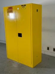 The Uline 45 Gallon Flammable Liquid Storage Cabinet is engineered for the compliant and safe containment of flammable liquids commonly used in biochemical and molecular biology laboratories. Constructed from bright yellow powder-coated steel, it ensures high visibility and durability in laboratory environments focused on synthetic biology and bioprocessing workflows.