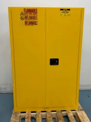 The ULine H-1564M-Y Flammable Liquid Storage eCabinet is engineered to securely store up to 45 gallons of flammable chemicals, supporting essential fire safety protocols in laboratory and industrial environments. The cabinet features:
