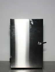 This stainless steel safety storage cabinet offers robust, corrosion-resistant construction suitable for laboratory and bioprocessing environments requiring secure storage solutions. Featuring interior dimensions of 16 inches by 20 inches, it includes one adjustable shelf for flexible organization of equipment or reagents. Despite being in very good used condition with minor scuff marks on the front door, the cabinet maintains full functionality and structural integrity. Manufactured in the United States, it is suitable as a standalone unit or as part of larger biotechnology laboratory setups.