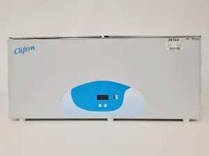 The Nickel Electro Clifton NE2-56D is a 56L water bath, previously utilized in a university setting and now available after being declared surplus to requirements. The unit is fully operational, having been tested with a temperature probe (probe not included) to ensure accurate functionality. It features a temperature range from ambient +5 to 100°C, making it suitable for a variety of laboratory applications. The unit operates on a 230V 50/60Hz power supply and is in good cosmetic condition with only minor marks. Serial number: 98307.