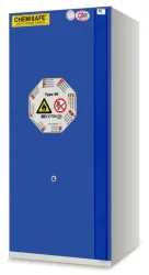 The LITHIUMSAFE 90 CHEMISAFE is a fire-resistant safety cabinet engineered for the secure storage of lithium batteries, manufactured in Italy.