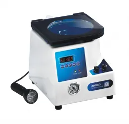 Labconco CentriVap micro IRVacuum Concentrator Compact dimensions: 8.8L x 10.4W x 8.9 in.H (22.4 x 26.4x 22.6cm); overall depth including glass trap: 12.9 (32.8cm) PTFE coated chamber Transparent infrared (IR) glass lid directs heat to the samples to speed evaporation and reduces cross contamination from condensation Built-in PTFE coated diaphragm pump Microprocessor-controlled 300W heater Centrifugal motion of 1700 rpm Built-in front-mounted analog vacuum gauge Easy-to-read LCD display 75mL glass trap Quiet operation Fast evaporation