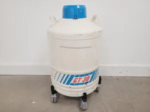 The Air Liquide GT 38 Liquid Nitrogen Dewar is a high-quality cryogenic storage solution equipped with six storage racks. Originally part of a university laboratory, it is in good cosmetic condition, although it has not been tested at our facility. It provides efficient storage for biological samples or other materials requiring liquid nitrogen preservation, including six metal cylinders for organized storage.